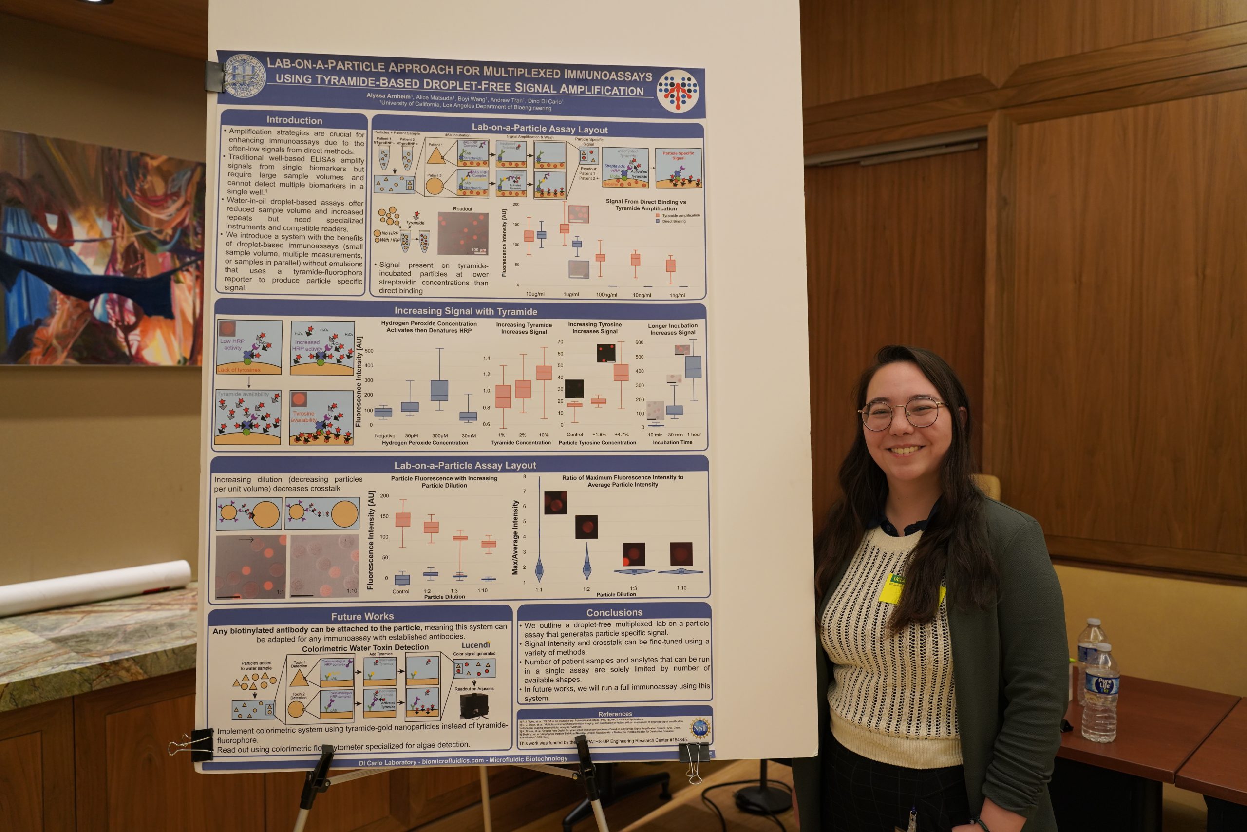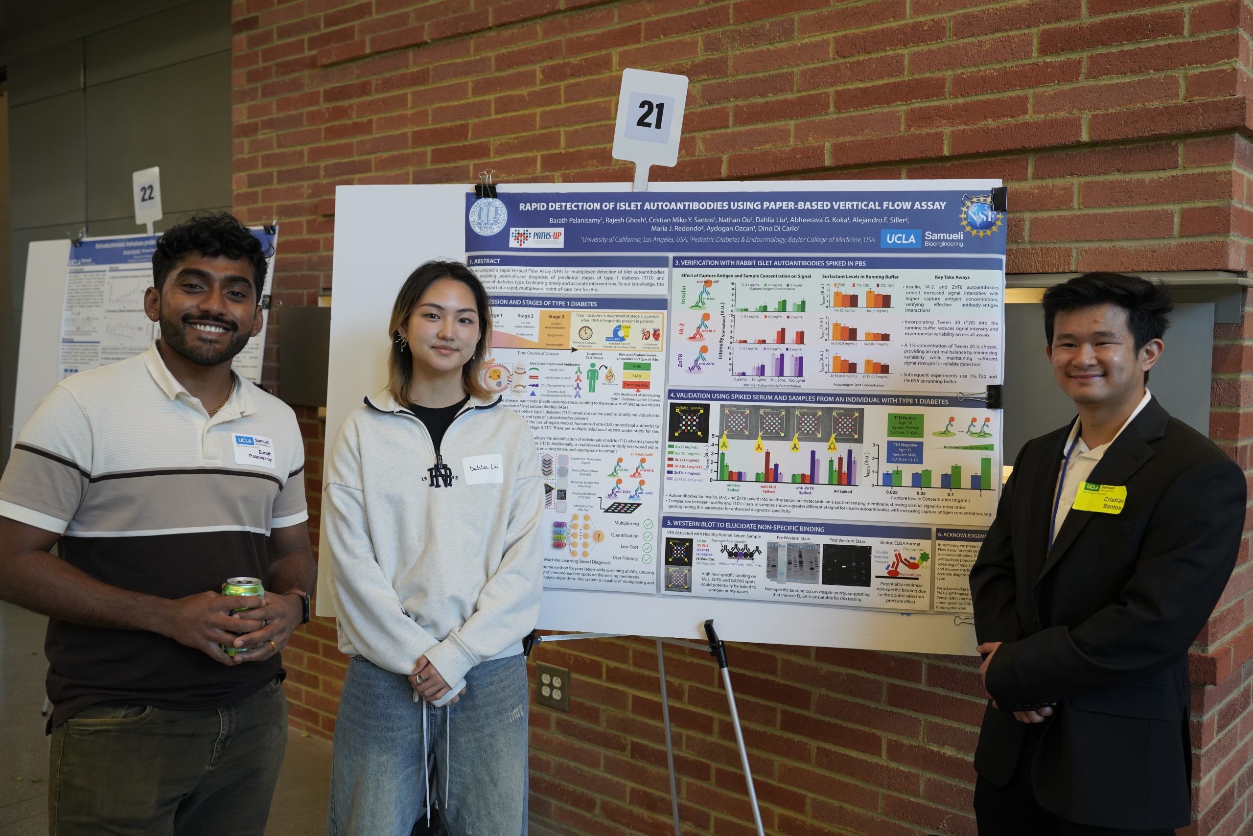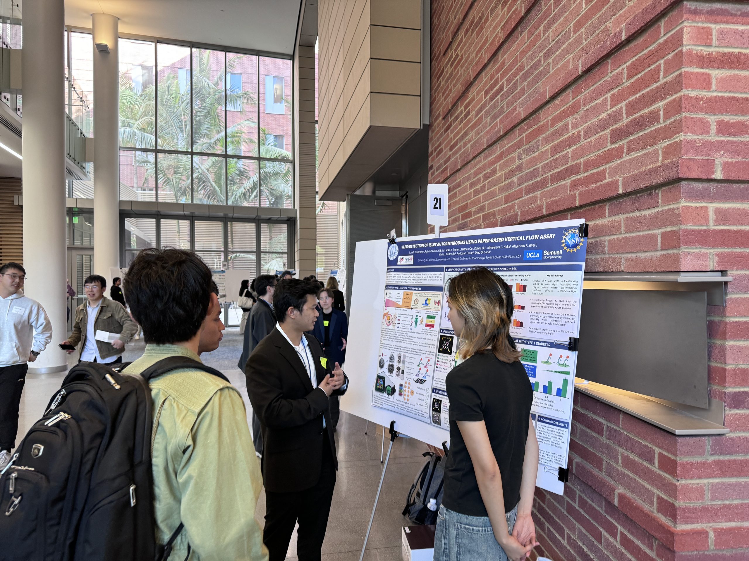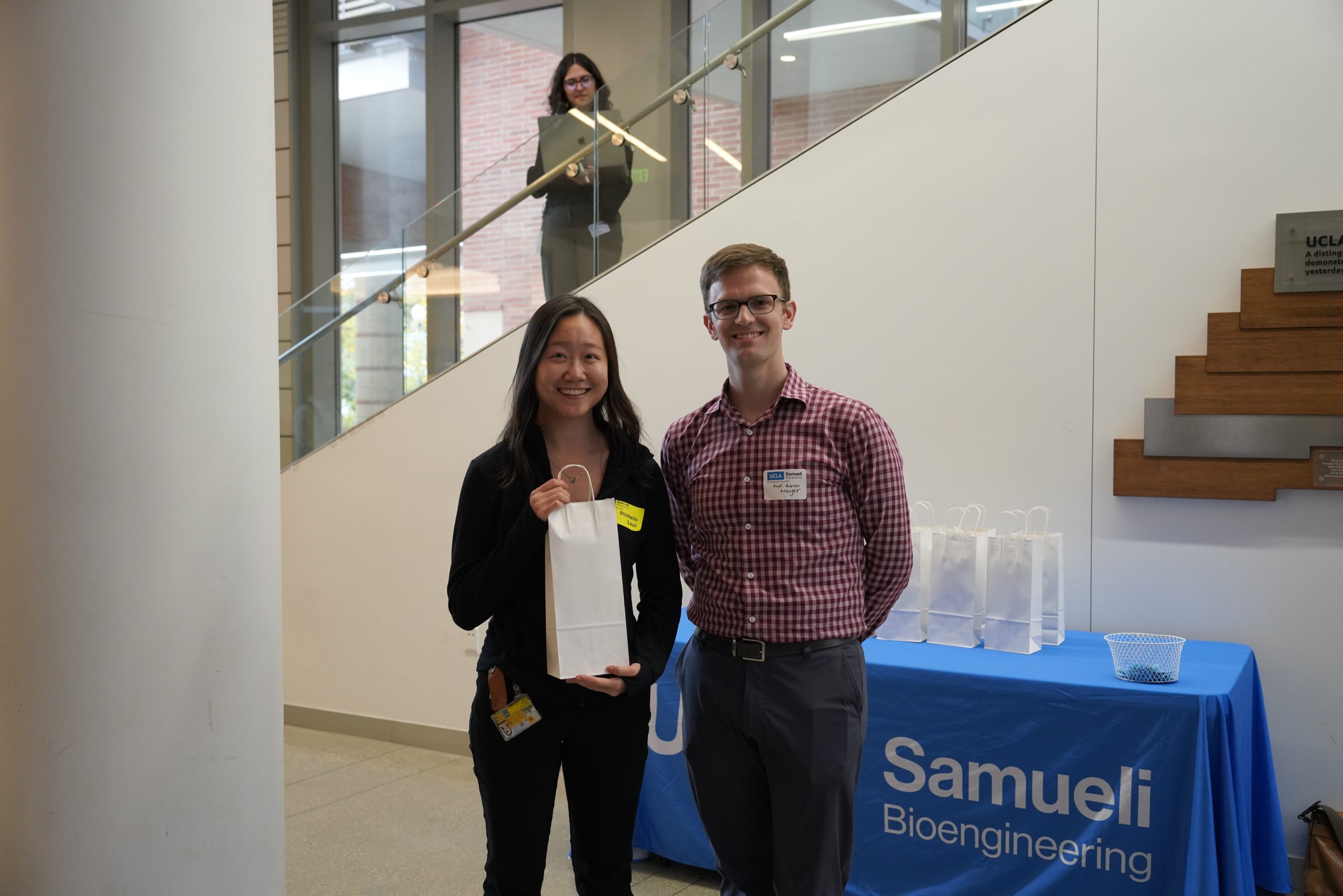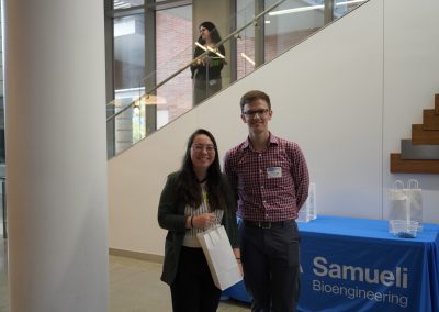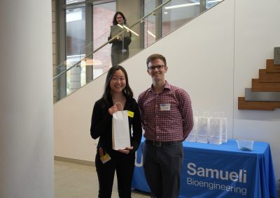 The event began with a brief breakfast buffet before it transitioned into the auditorium for the welcome and opening remarks given by Dr. Dino Di Carlo. After that, the three keynote speakers for this year: Dr. Sanaz Memarzadeh, Dr. Kyung Sung and Dr. Quen Cheng, spoke briefly discussing prevalent research done under their labs. Then after a brief intermission break, began the oral presentations of students: Milos Vukadinovic, Michelle Loui and Deepak Singla. After all the oral presentations were given, attendees and presenters had lunch in the Cohen Room. The poster presentation competition started at 1:15 PM, which consisted of many different research projects being presented by undergraduate students, graduate students, and postdocs. They were judged by industry guests and faculty judges. BGA tallyed the scores before the closing remarks, raffle, and awarding occurred inside the auditorium.