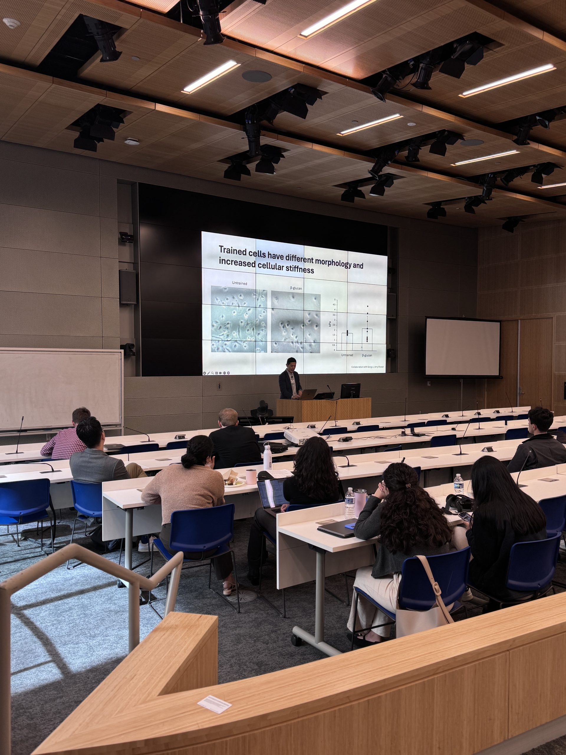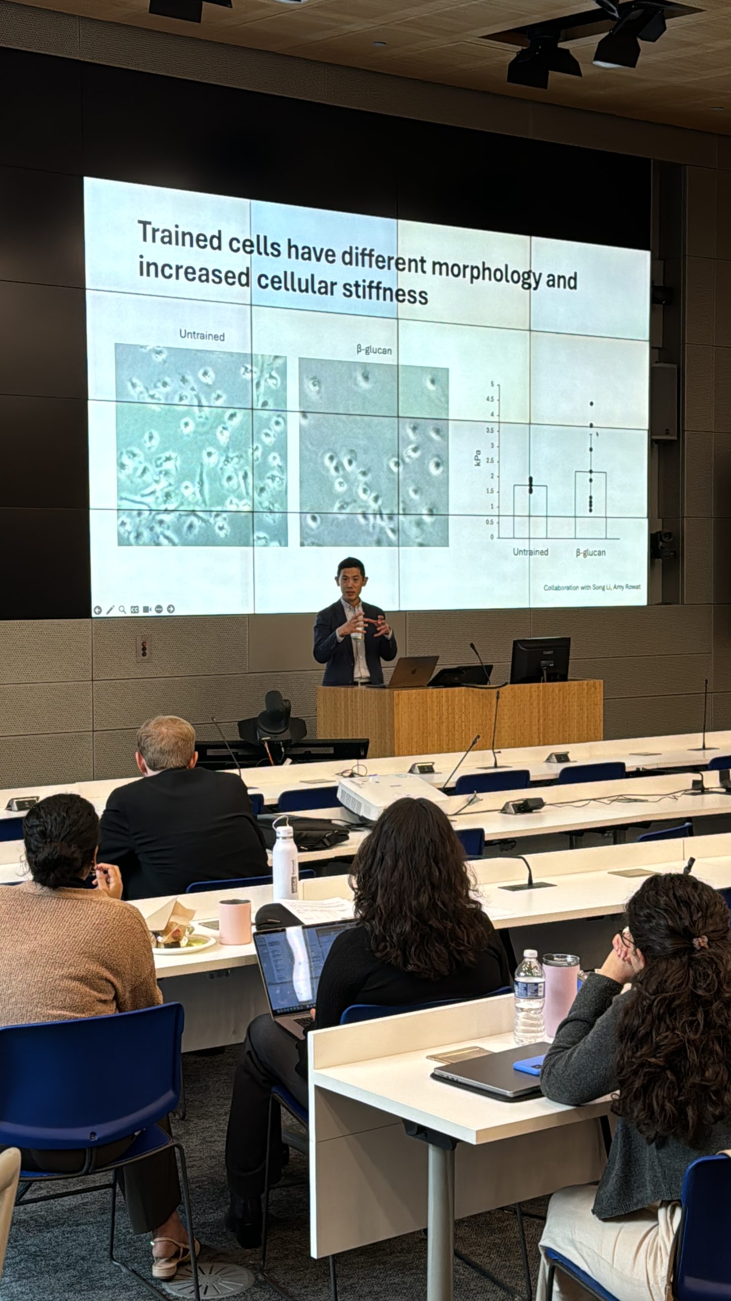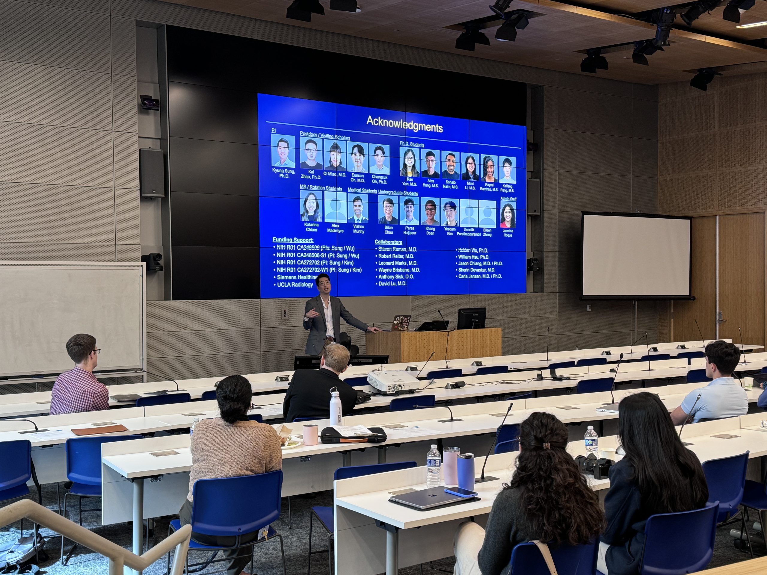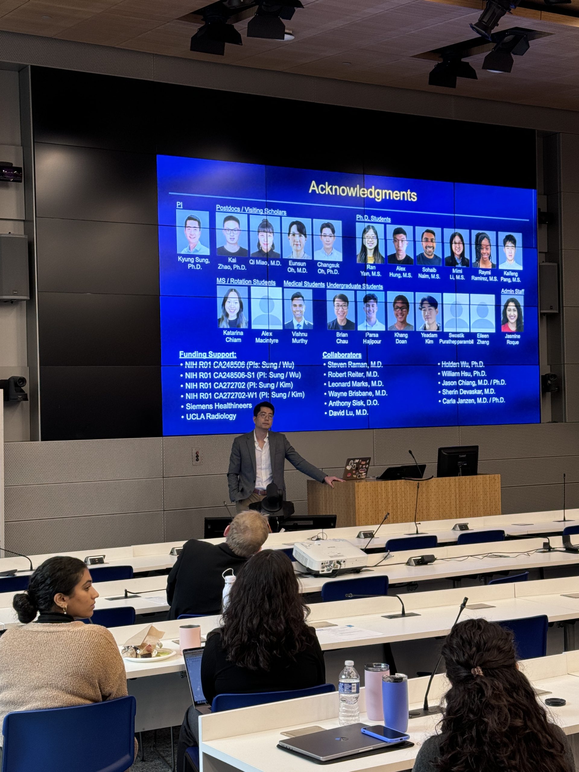 The event began with a brief breakfast buffet before it transitioned into the auditorium for the welcome and opening remarks given by Dr. Dino Di Carlo. After that, the three keynote speakers for this year: Dr. Sanaz Memarzadeh, Dr. Kyung Sung and Dr. Quen Cheng, spoke briefly discussing prevalent research done under their labs. Then after a brief intermission break, began the oral presentations of students: Milos Vukadinovic, Michelle Loui and Deepak Singla. After all the oral presentations were given, attendees and presenters had lunch in the Cohen Room. The poster presentation competition started at 1:15 PM, which consisted of many different research projects being presented by undergraduate students, graduate students, and postdocs. They were judged by industry guests and faculty judges. BGA tallyed the scores before the closing remarks, raffle, and awarding occurred inside the auditorium.