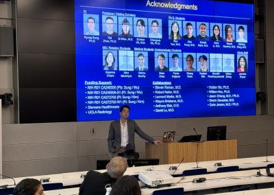 The Department of Bioengineering and BGA hosted the seventh annual Research Day on Friday, November 15th 2024. The event brought together students, faculty and staff, industry board members, alumni, and invited guests together from all over the world. Research Day featured keynote speakers, a student research talk competition, a poster session and competition, and networking at the Mong Learning Center in Engineering VI. We’d like to thank our industry and alumni guests for participating as guest judges for our lecture and poster competitions, and our keynote speakers for their presentations!