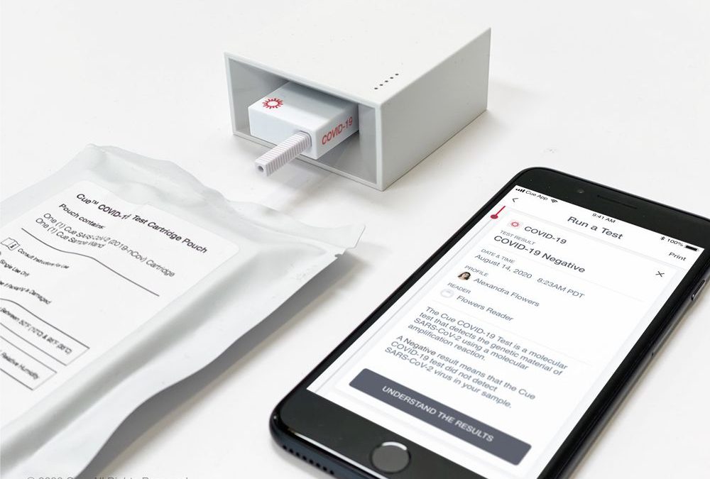 Cue Health’s test got emergency clearance in June. It detects the virus’s genetic material with a test cartridge about the size of an Airpod case and reader that allow results on-site in about 25 minutes, read using a smartphone app. That makes for fast answers that are about as reliable as tests sent out to a lab, said Brett Giroir, an assistant health secretary leading the administration’s testing efforts.